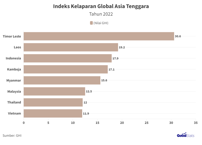 Global Hunger Index (GHI) turut menyuarakan kekhawatiran akan angka kelaparan di Indonesia. Melansir laporan yang dirilisnya tahun 2022 silam, Indonesia menjadi negara ketiga dengan indeks kelaparan tertinggi di Asia Tenggara.