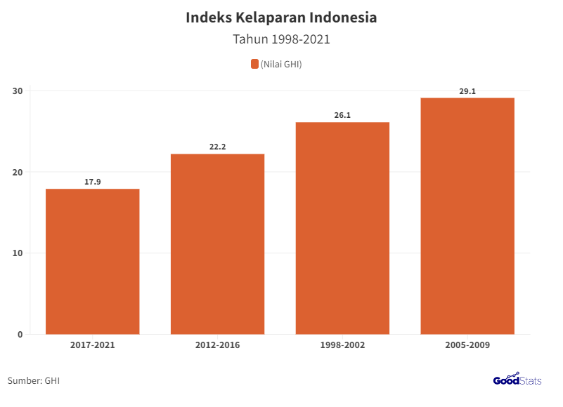 Skor tahun 2022 lalu merupakan skor terendah sepanjang sejarah. GHI tertinggi diraih pada tahun 2007, dimana skor saat itu mencapai 29,1, menandakan tingkat kelaparan di Indonesia sudah cukup serius. Apabila ditelaah lebih lanjut, pada tahun 2007, terdapat lebih dari 19 juta penduduk Indonesia mengalami kekurangan gizi. Tidak hanya itu, 2-3 anak dari setiap 100 anak bahkan meninggal sebelum genap menginjak usia 5 tahun.